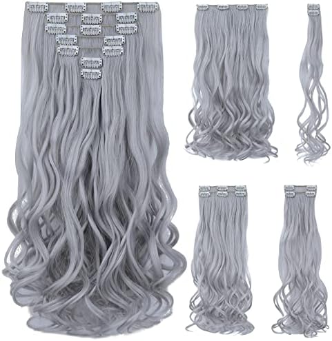 Amazon Com Silver White Hair Extensions Clip On Hair Extension 18 Wavy 5 Oz Synthetic Syxlcygg Fluffy And Not Tangled Hair Pieces 22 Straight Cheap Curly Dark Brown Blonde Grey Women Gifts